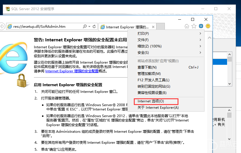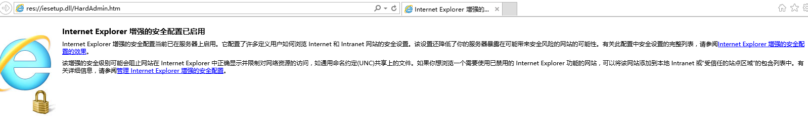 一般我們安裝完服務器后,開啟 Internet Explorer 會發(fā)現(xiàn)無法上網或者上網內容被屏蔽掉了
