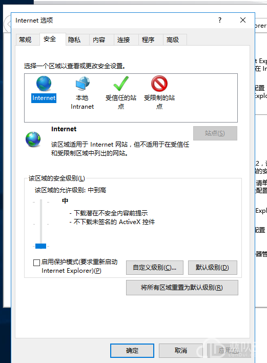 6. 安全性等級則降級至【中高】,您可以自行設置您要的安全性等級。