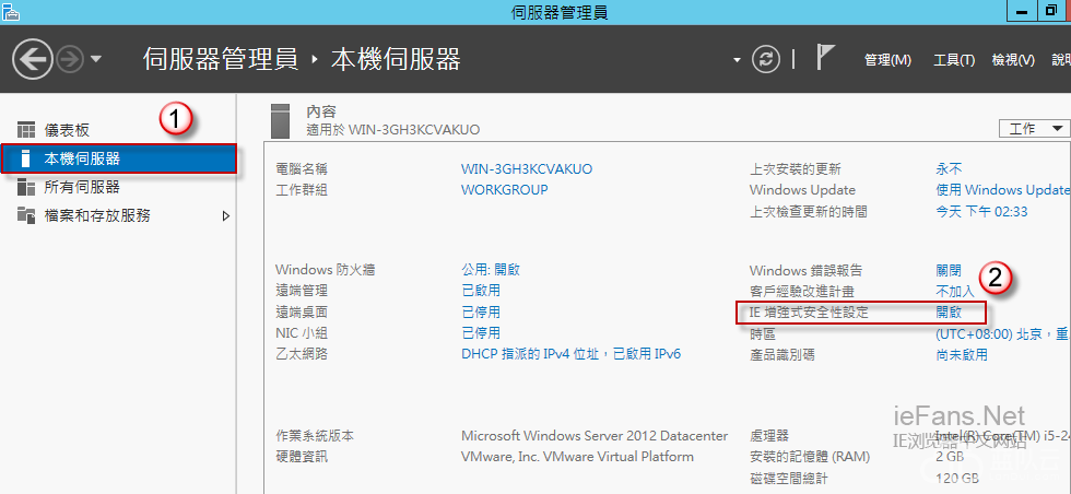 如何在Windows Server 2012啟用或關(guān)閉Internet Explorer增強(qiáng)的安全配置