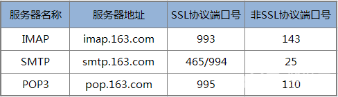 | 郵箱 | POP3服務(wù)器(端口995) | SMTP服務(wù)器(端口465或587) |
