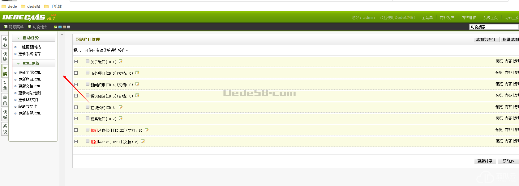 5.進(jìn) 生成—一鍵生成全站—生成首頁(生成首頁時(shí)。看看首頁模板路徑對(duì)不對(duì))